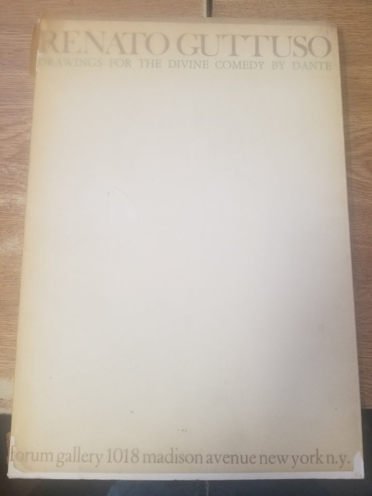 Amerigo Terenzi (editor); RENATO GUTTUSO; Forum Gallery; Very Good; Reprint; 1969; Scarce. Beige wraps starting to pull away just at upper spine edge. Binding still sound, inner pages clean and bright. "This exhibition has been organized in association with the Il Gabbiano Gallery of Roma." Text in English, introduction reproduction of Guttuso's hand-written Italian notes. 18 full-page color illust.;