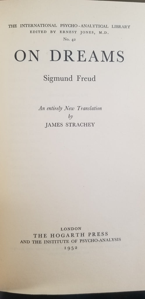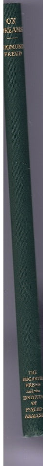 Freud, Sigmund; ON DREAMS; HOGARTH PRESS (ENGLAND); Very Good with no dust jacket; First English Edition; 1952; An entirely New Translation by James Strachey. Green boards tight and straight, inner pages clean and unmarked.;
