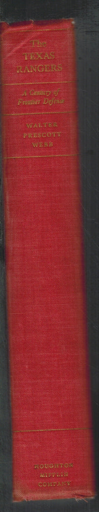 Webb, Walter Prescott; THE TEXAS RANGERS, A CENTURY OF FRONTIER DEFENSE; Houghton Mifflin Company; Very Good with no dust jacket; First Edition; 1935; Owner note to inner pastedown, second note to title page. Red underlining to introductory J. Fairfax/Blakesborough verse. Inner text clean and unmarked. Red cloth binding tight and straight, corners sharp, very light shelfwear.;