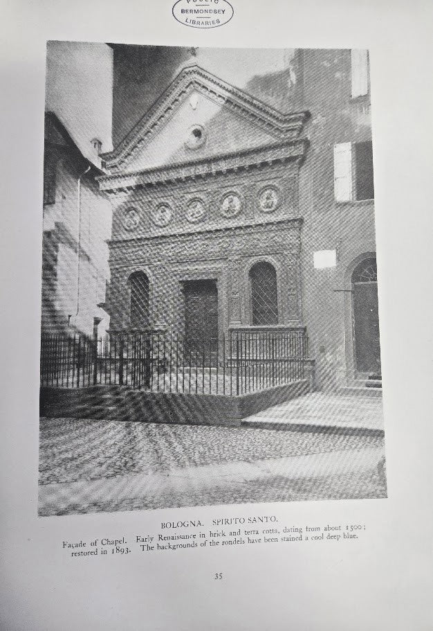 Terra Cotta Association (Pub); TERRA COTTA OF THE ITALIAN RENAISSANCE; Terra Cotta Association; Very Good with no dust jacket; Ex-library; 1928; Two library stamps to endpapers, no further markings. 1/4 Blue leather spine over cardboard. Bumped corners, inner gutter shows two small cracks, however these are primarily cosmetic, with paper covers worn away. Binding is sound, inner pages clean and unmarked.;